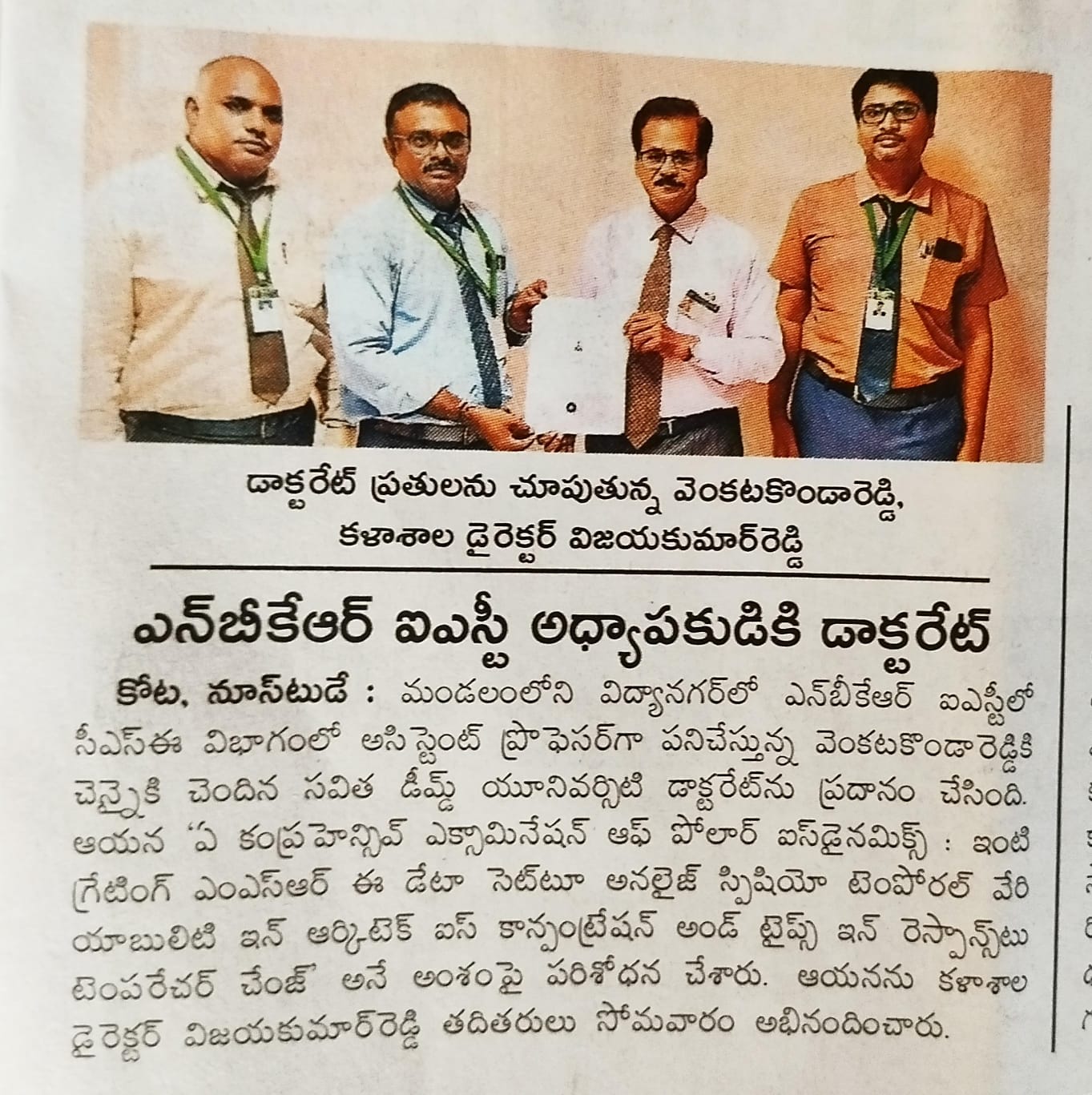 Hearty Congratulations to Mr B. Madhusudhana Reddy to achieving Phd Degree from Vel Tech(deemed to be University),Chennai |